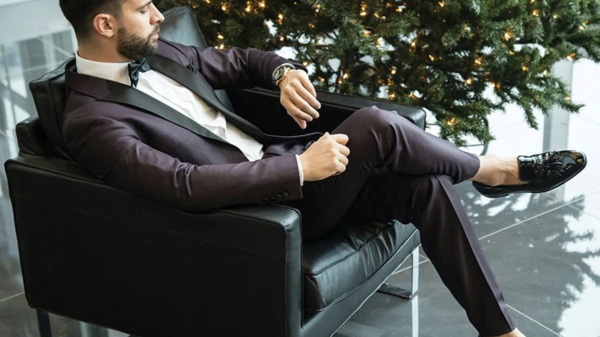 - Chaussures : Des chaussures en cuir verni sont parfaites avec un smoking, tandis que des mocassins ou des richelieus marron complètent magnifiquement un costume.